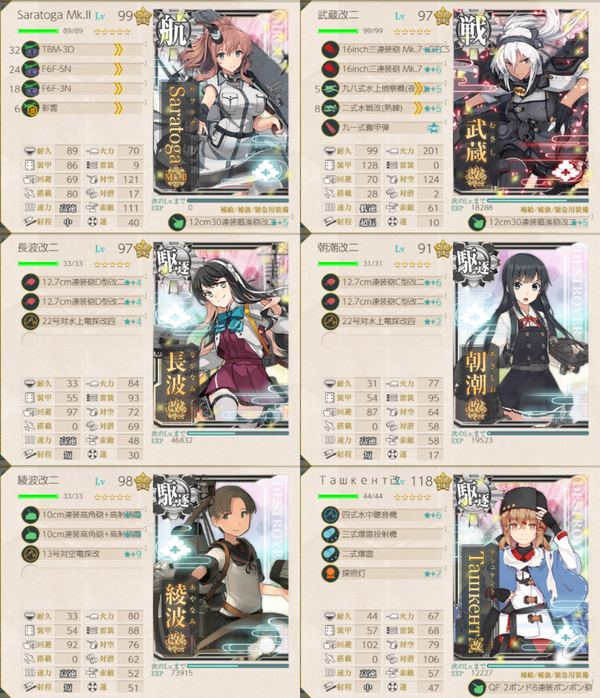 (戦艦 or 空母)旗艦+駆逐2以上を含んで、以下の海域をS勝利
