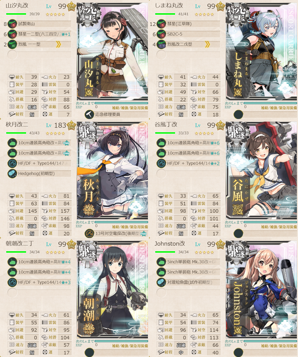 ・駆逐=1スロ先制対潜艦、対空カットイン艦など
