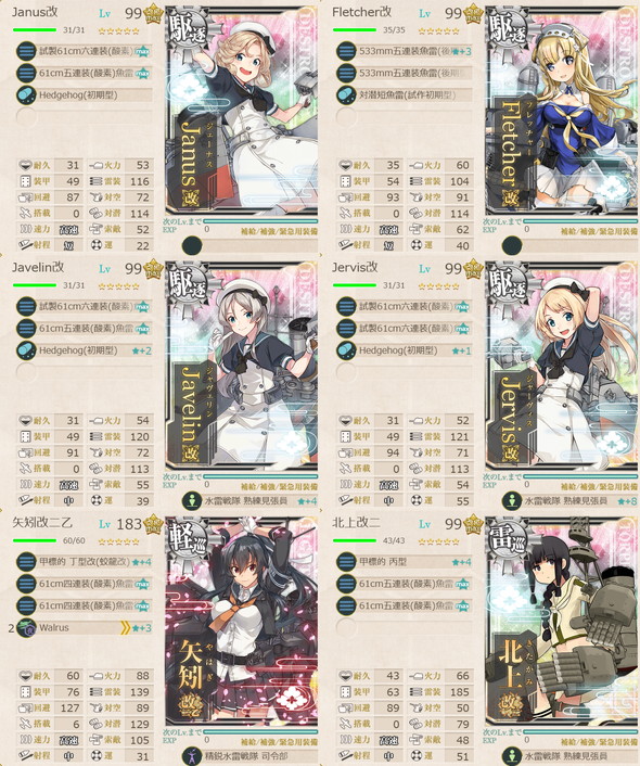 J:Ark Royal(丁),Honolulu(丁),天霧(丁),狭霧(丁),有明(丙),夕暮(乙),夕雲(丁),巻雲(丁),長波(丁),占守(丁),国後(丁),Javelin(丁)