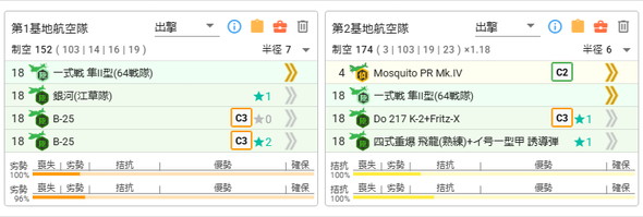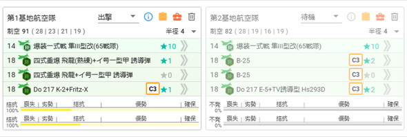 第1航空隊 = 【出撃】 A2(4)/C2(4) (C2の時は退避でもOK)