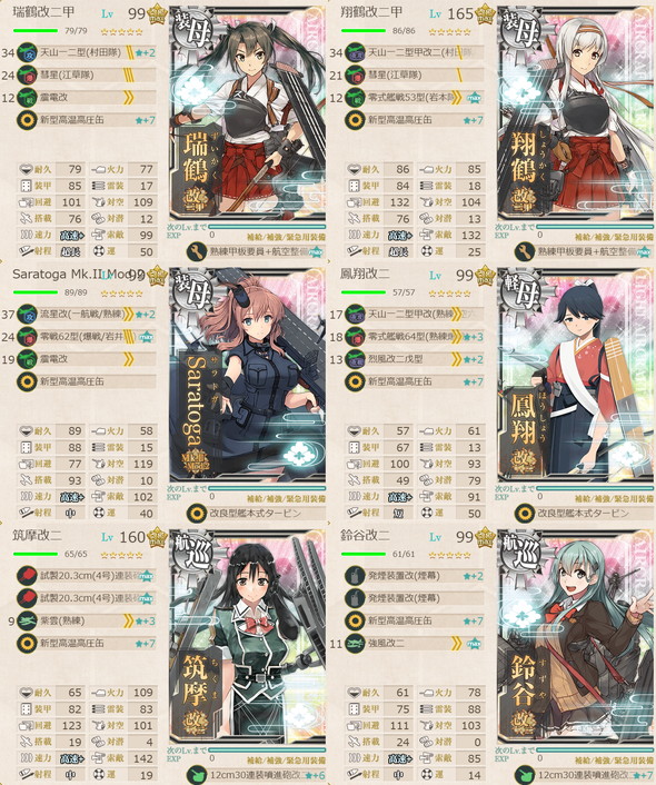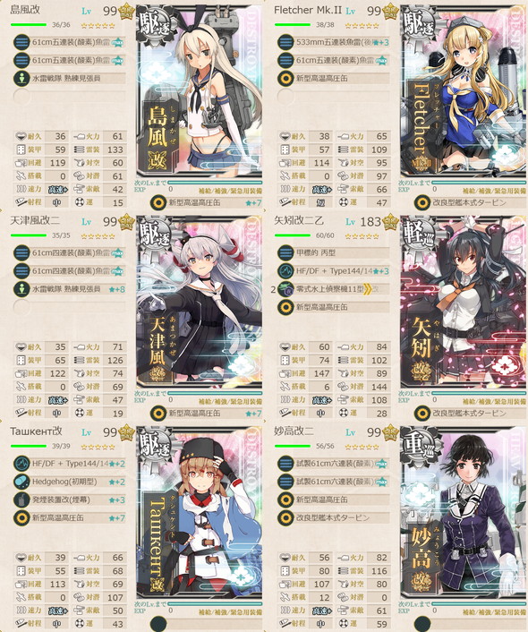 Z:Colorado(丁),Saratoga(丁),Gambier Bay(丁),能代(丁),親潮(丁),早潮(丁),初風(丁),天津風(丁),時津風(丁),磯風(丁),谷風(丁),野分(丁),舞風(丁),Johnston(丁),対馬(丁),鵜来(丁),山汐丸(丁),熊野丸(丁),Drum(丁),南海(丁),Dace(丁)