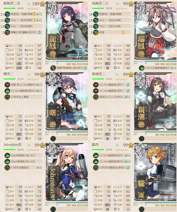 以下の艦を4隻含む艦隊で、以下のマップを3回ずつS?A?勝利