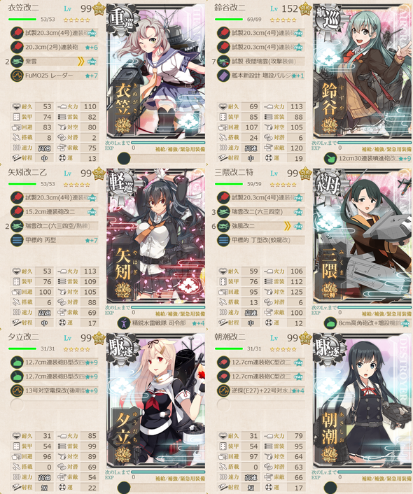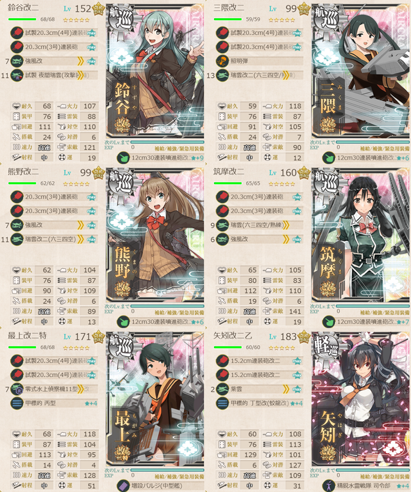 衣笠/鈴谷/熊野/大淀/球磨/鹿島/矢矧改二/矢矧改二乙/酒匂/Sheffield/Atlanta
