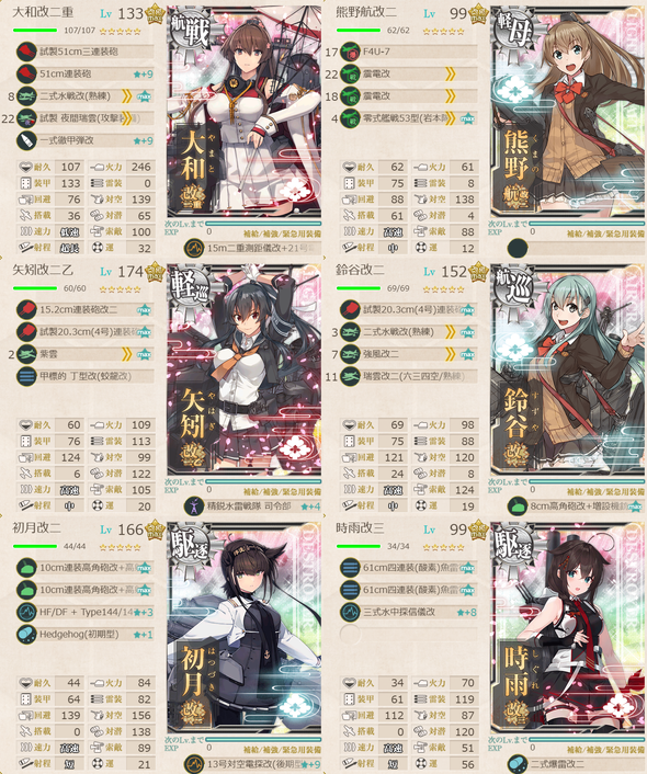 第1艦隊 : 戦艦1、軽空母1、航巡1、軽巡1、駆逐2
