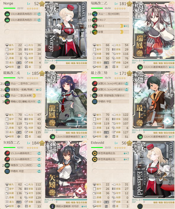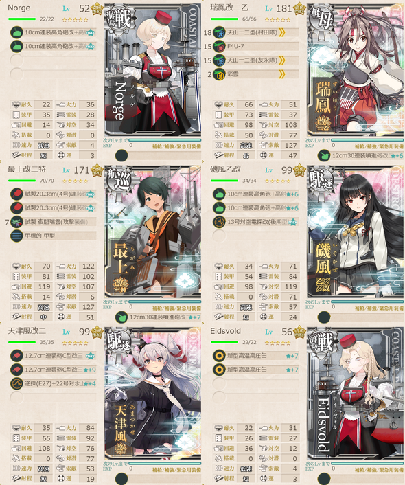 第1艦隊 : 軽巡1、水母1、航巡1、軽空母1、海防戦艦2