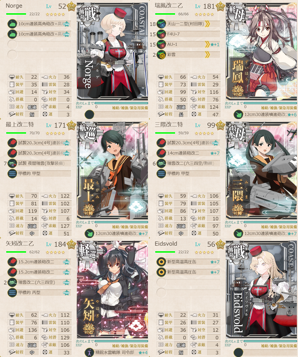 第1艦隊 : 軽巡1、航巡1、軽空母2、海防戦艦2