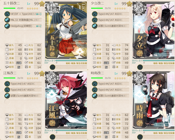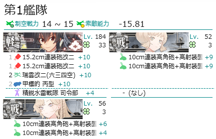 第1艦隊 : (旗艦)軽巡1、駆逐3(海防2もOK)