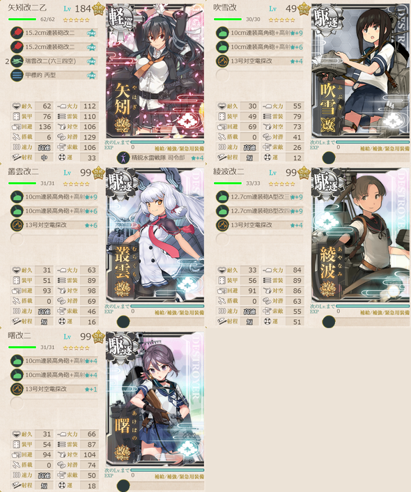 第1艦隊 : (旗艦)軽巡1、駆逐4
