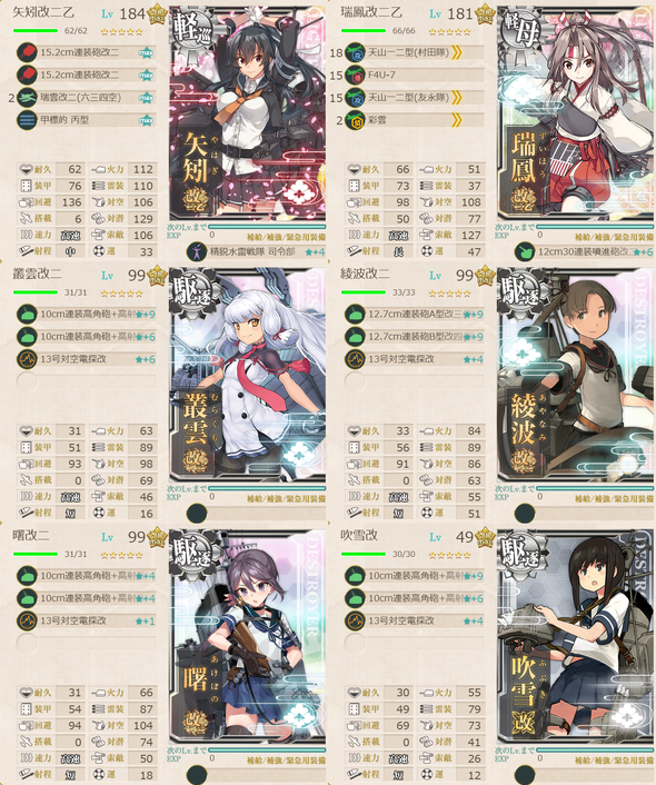 第1艦隊 : (旗艦)軽巡1、軽空母1、駆逐4