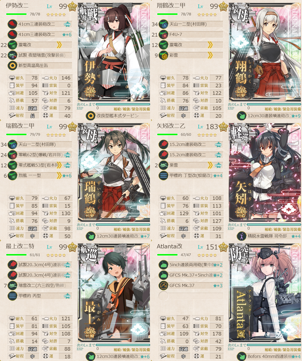・空母は加賀護を未所持なので戊で夜間カットインとしました