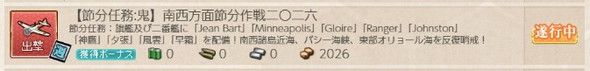26/1/28実装の期間限定任務「【【節分任務:鬼】南西方面節分作戦二〇二六」の攻略です。