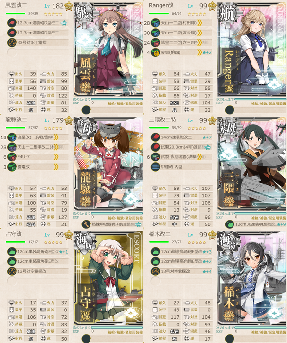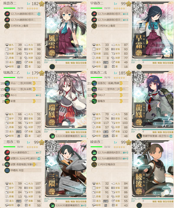 (旗艦)+2番艦に以下の艦を含む艦隊で、以下の海域を2回ずつS?A?勝利以上
