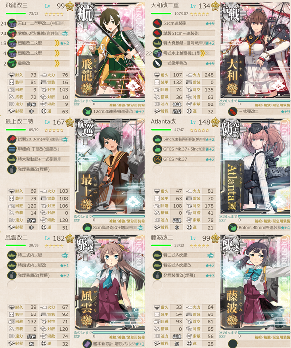第1艦隊 : 空母系3、(重巡級/軽巡)1、駆逐2
