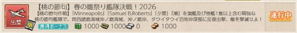 26/3/2実装の期間限定任務「【桃の節句】春の雛祭り艦隊決戦!2026」の攻略です。