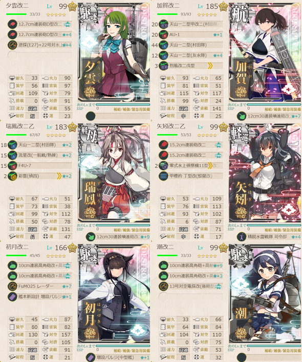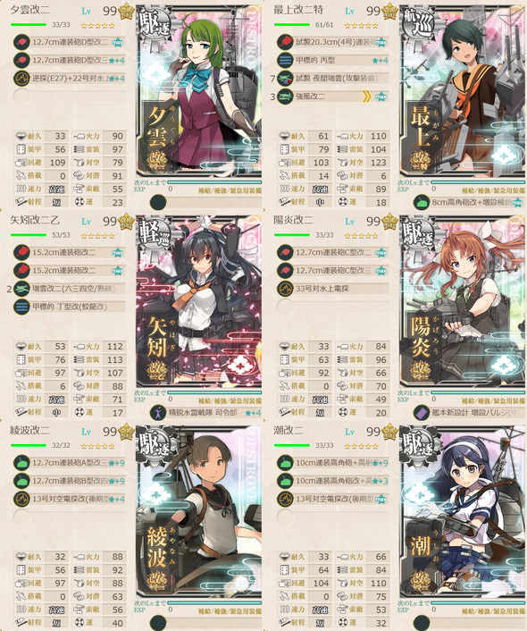 以下の艦を含む(旗艦1僚艦1)艦隊で、以下の海域を2回ずつS?A?勝利